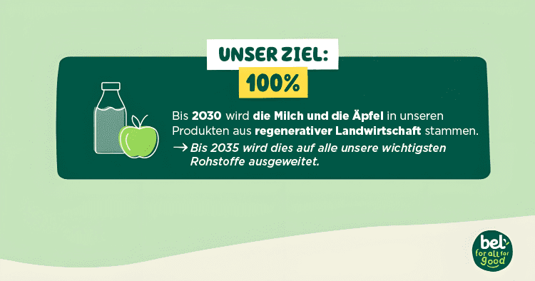 • Die gesamte Milch und die Äpfel, die in den Produkten von Bel verwendet werden, sollen bis 2030 aus regenerativer Landwirtschaft stammen, und dieser Prozess soll bis 2035 auf alle wichtigen Rohstoffe ausgedehnt werden.